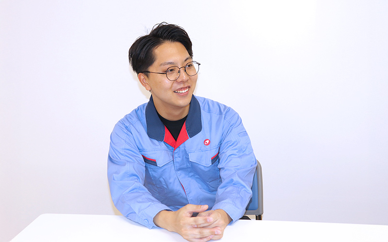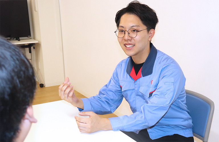 - 九州内で就職したかったことに加え、就職活動中の対応が丁寧で、社内見学時に社員の方々の人当たりの良さを感じました。また、学生時代に学んだ知識が、当社のめっき技術の理解に役立つと感じたからです。